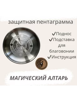 Металлическая тарелка-алтарь (поднос) и подсвечник, 14 см