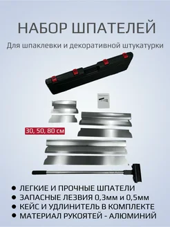 Набор шпателей (30-50-80см) с алюминиевой рукоятью
