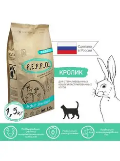 Корм для стерилизованных кошек сухой ПЕППО Кролик 1.5 кг