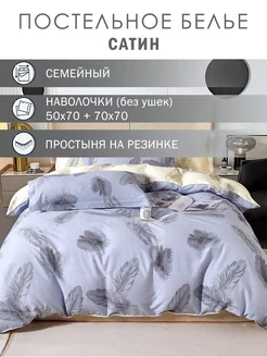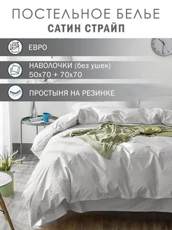 Постельное белье Евро страйп-сатин простыня на резинке кпб
