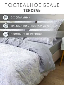 Постельное белье 2 спальное на резинке тенсель эвкалипт