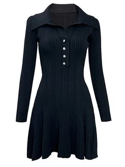 Платье женское трикотажное на пуговицах вечернее лапша мини