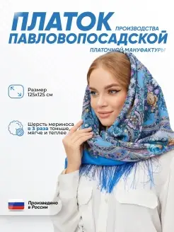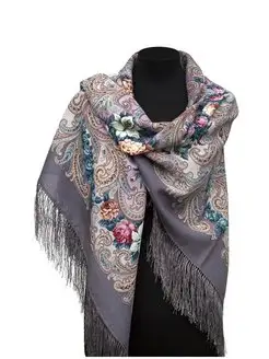 Павловопосадский шерстяной платок Серебряный ручей 125х125см