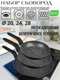 Набор сковородок с антипригарным покрытием 20см 24см 28см