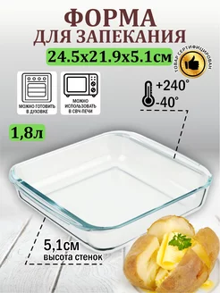 Форма для запекания квадратная жаропрочное стекло 1,8