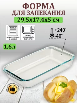Форма для запекания прямоугольная жаропрочное стекло 1,6л