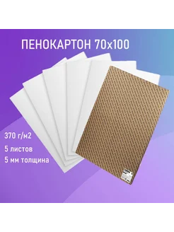 Пенокартон матовый, 70х100 см, толщина 5 мм, белый, 5 листов