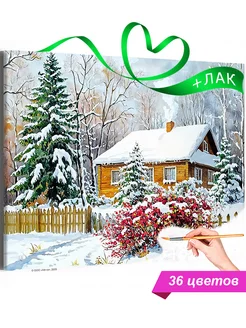 Картина по номерам Дом в зимнем лесу Пейзаж Деревня Зима