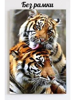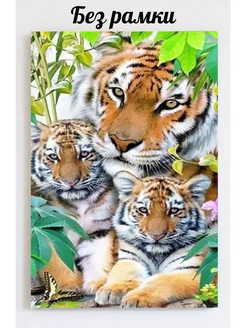 Алмазная мозаика без подрамника Тигриная семья