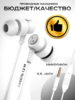 Вакуумные проводные наушники с микрофоном для телефона и ПК