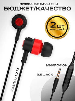 Вакуумные проводные наушники с микрофоном для телефона 2пары