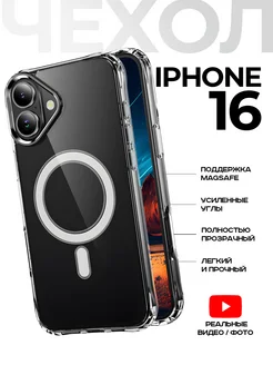 Чехол на iPhone 16, Айфон 16 с MagSafe прозрачный