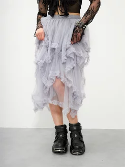 Юбка фатиновая миди бохо асимметричная готическая лолита y2k