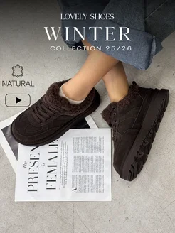Кеды зимние с мехом натуральная замша на широкую ногу