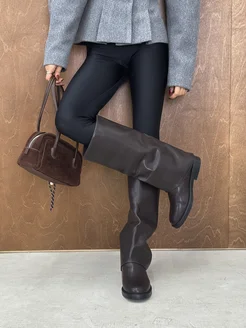 Сапоги казаки демисезонные с широким голенищем замшевые