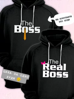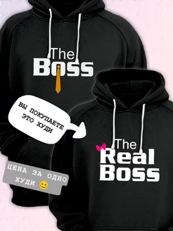 Парные худи The Real Boss Настоящий босс мем с принтом