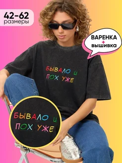 Футболка оверсайз с вышивкой с надписью бывало и пох уже
