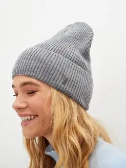 Шапка бини женская зимняя для девочки вязаная с отворотом