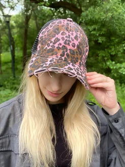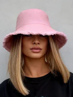 Панама летняя розовая хлопок с бахромой с рваными краями