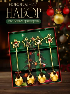 Новогодние чайные ложки набор 4 шт