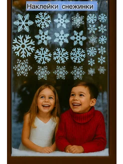 Наклейки новогодние снежинки на окно 27 штук