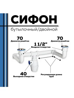 Сифон для раковины 1 1 2"х40 двойной одноуровневый