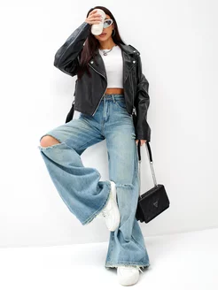 Джинсы багги рваные широкие у2к с дырками на низкой посадке