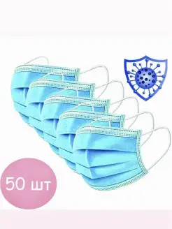 Маски медицинские 50 шт Защитные трехслойные с фиксатором дл…