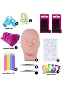 Манекен тренировочный для наращивания ресниц с ресницами