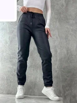 Брюки утепленные кожаные джоггеры