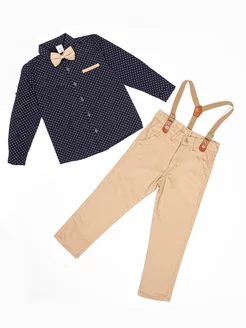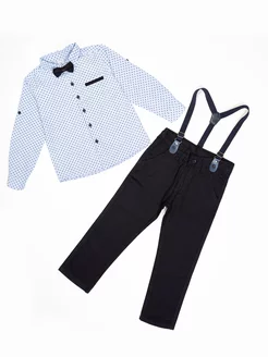Нарядный брючный костюм для малыша с бабочкой и подтяжками