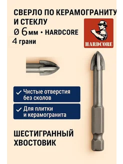 Сверло по керамограниту и керамической плитке 6мм 4 грани