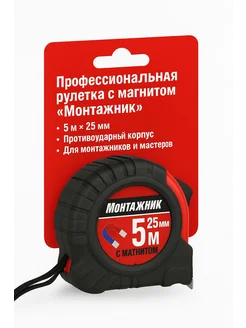 Строительная рулетка с магнитом 5 м х 25 мм. Противоударная