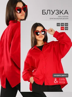 Блузка рубашка школьная хлопок оверсайз длинный рукав