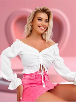 кроп топ крестьянка открытые плечи