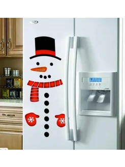 новогодние наклейки на окна снеговик на двери холодильника