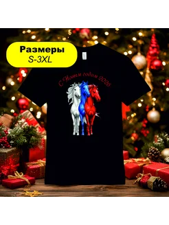 футболка новогодняя с лошадью