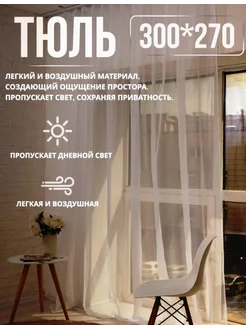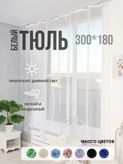 Тюль в спальню и гостиную 300*270 длинная готовая на ленте