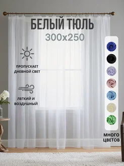 Тюль в спальню и гостиную 300*250 длинная готовая на ленте