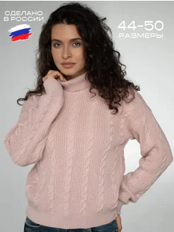 Свитер с горлом теплый вязаный джемпер трикотажный с косами