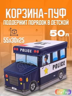 Детская корзина пуф для хранения игрушек в виде машины