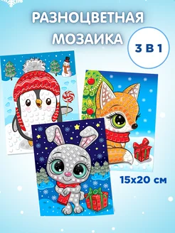 Разноцветная сверкающая новогодняя мозаика 3 в 1