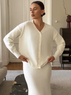 Костюм вязаный трикотажный с кардиганом и юбкой