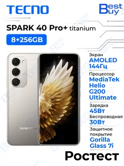 Смартфон SPARK 40 Pro+, 8 256GB,NFC,MOON TITANIUM