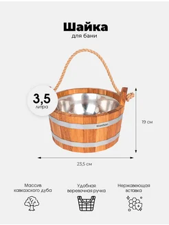 Деревянная шайка для бани с нержавеющей вставкой 3,5 л