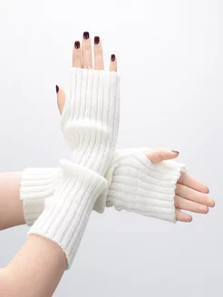 Митенки теплые длинные перчатки без пальцев