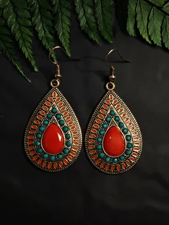 Серьги этнические цветы круглые с бирюзой бохо стиль