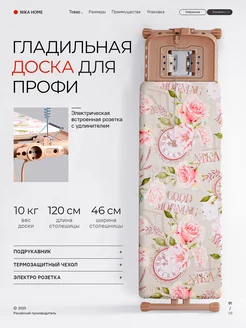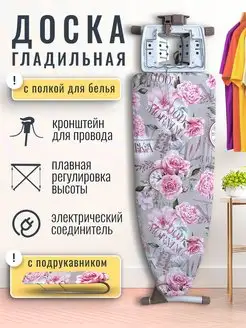 Доска гладильная широкая с розеткой и полкой для белья