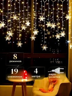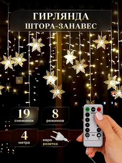Гирлянда интерьерная штора занавес 4 метра снежинки