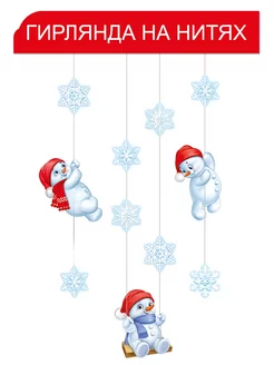 Гирлянда на нитях Снеговики и снегири для украшения школы